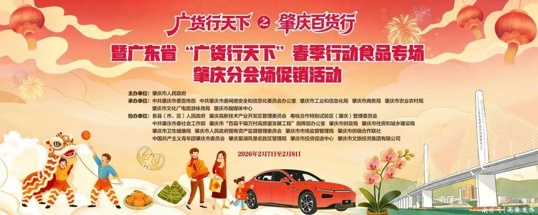 为积极响应全省“广货行天下”促消费行动号召,全面释放消费活力,擦亮“肇庆制造”品牌,由肇庆市人民政府主办的“广货行天下”之“肇庆百货行”暨广东省“广货行天下”春季行动食品专场(肇庆分会场)将于2月7日至8日在七星岩牌坊广场举行。